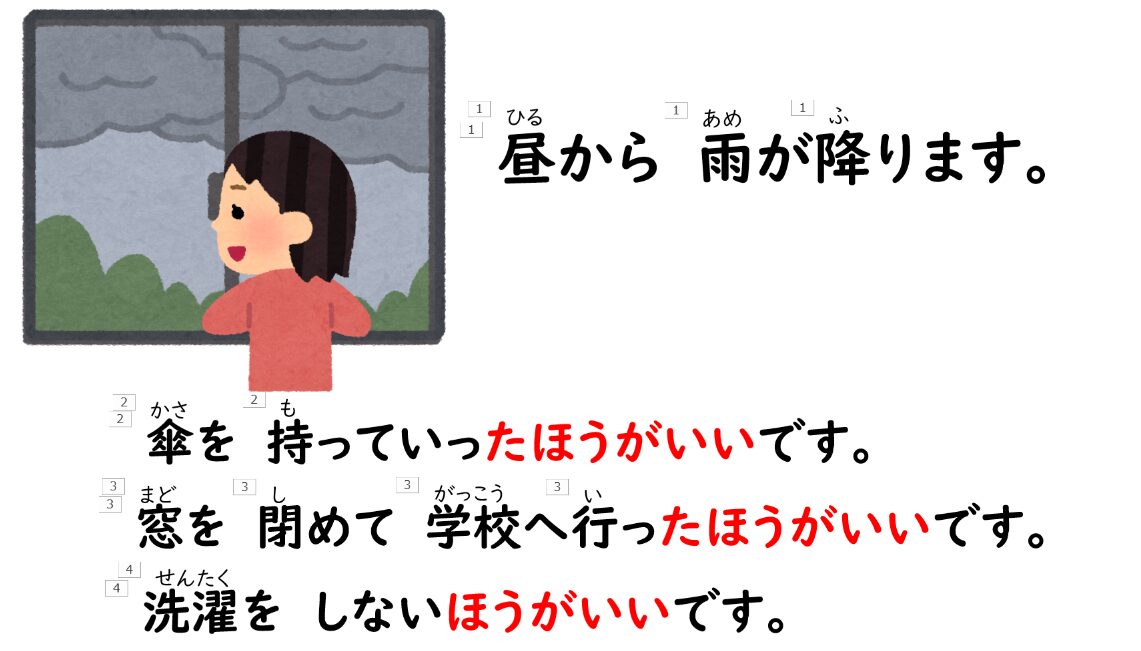【授業用PPT】みんなの日本語初級Ⅱ_第32課 PPT 2021.08.122025.08.28 みんなの日本語初級Ⅱ第32課①病院へ いったほうが いいです。 Download 604 ダウンロード みんなの日本語初級Ⅱ第32課②今夜は 星が みえるでしょう。 Download 511 ダウンロード